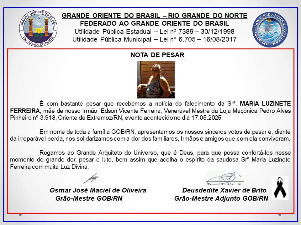 Na Manhã do dia 17/05/2025 (sábado), LOJA MAÇÔNICA UNIVERSÍTARIA ESTRELA NATALENSE 4122, ORIENTE DE PARNAMIRIM-RN, jurisdicionada ao Grande Oriente do Brasil – Rio Grande do Norte (GOB/RN), realizou SESSÃO ORDINÁRIA DE INSTRUÇÃO, NO GRAU DE APRENDIZ MAÇOM. Os trabalhos foram conduzidos pelo Irmão Rannieri Damasceno doa Santos, Venerável Mestre da Loja, contando com […]