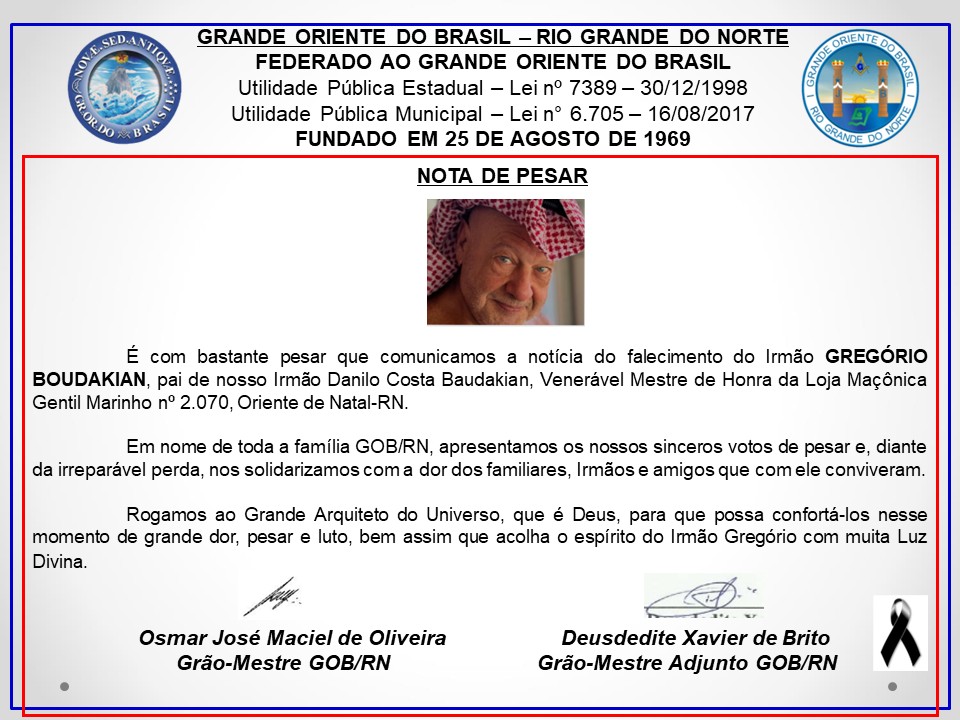 Na manhã do dia 13/09/2025 (sábado), aconteceu a PODEROSA CONGREGAÇÃO ESTADUAL – 2025, do Grande Oriente do Brasil – Rio Grande do Norte (GOB-RN), nos termos do que prescrevem os artigos 68, inciso I, 81 e 82, da Constituição do GOB-RN. O encontro reuniu os Veneráveis Mestres das Lojas Maçônicas Jurisdicionadas ao GOB-RN, […]