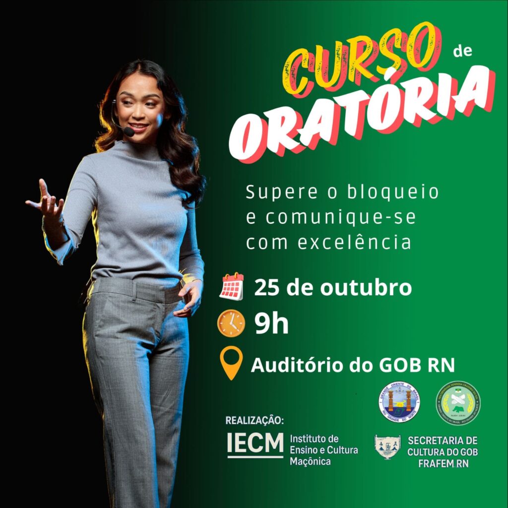 CURSO DE ORATÓRIA Deixe um comentário / Notícias do GOB-RN / GRANDE ORIENTE DO BRASIL - RN / sex, 03 de outubro de 2025 CURSO DE ORATÓRIA Read More »