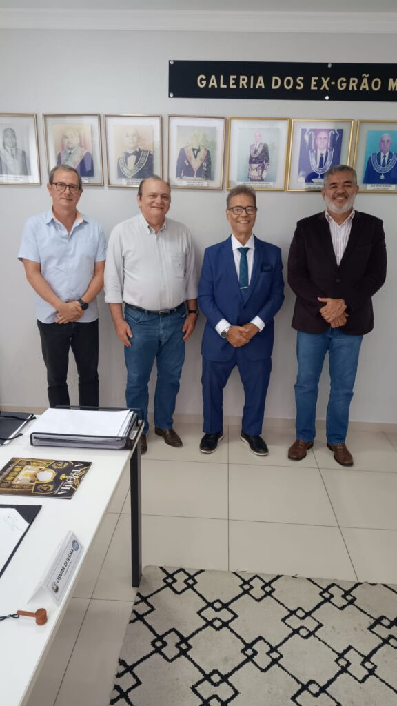 Na manhã do dia 09/10/2025 (quinta-feira), o Eminente Irmão OSMAR JOSÉ MACIEL DE OLIVEIRA, Grão-Mestre do Grande Oriente do Brasil – Rio Grande do Norte (GOB-RN), acompanhado pelo Poderoso Irmão NILO FERREIRA PINTO JÚNIOR, Presidente da Poderosa Assembleia Estadual Legislativa (PAEL-RN), e pelo Irmão RAFAEL ANTÔNIO FERNANDES, Presidente de Honra da PAEL-RN, recebeu a visita do Irmão CARLOS NEWTON DE S. PINTO, Venerável Mestre da LOJA VERÍSSIMO DE MELO nº 26, ORIENTE DE NATAL-RN, Jurisdicionada ao Grande Oriente do Rio Grande do Norte (GORN).
