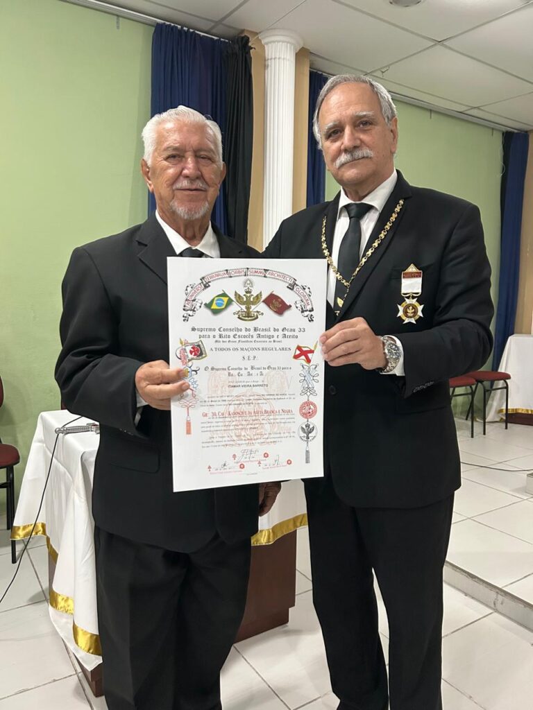 Também foram entregues a alguns dos Irmãos presentes os Diplomas do Grau 30 – Cavaleiro Kadosch e da Águia Branca e Negra.