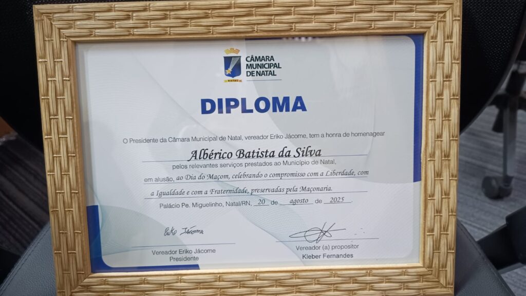 Na noite do dia 20/08/2025 (quarta-feira), no Plenário da Câmara Municipal de Natal/RN, ocorreu a Sessão Solene em Homenagem ao Dia do Maçom, de proposição do Irmão e Vereador KLEBER FERNANDES.